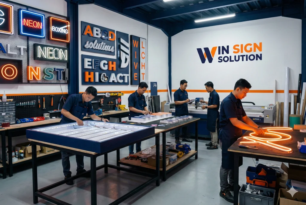 Win Sign menghadirkan solusi signage profesional untuk toko, kantor, dan bisnis di Bandung. Mulai dari huruf timbul, neon box, neon flex, acrylic sign, hingga laser cutting dan jasa marking dengan desain custom, material berkualitas.